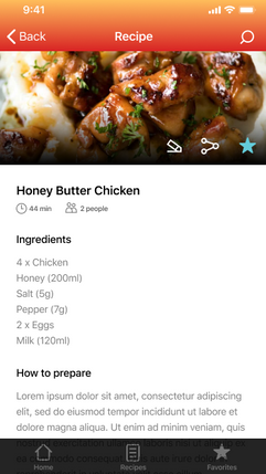 Projeto pessoal para um aplicativo de receitas online, que tem como público-alvo jovens que cozinham receitas tiradas da internet. Além da clássica pesquisa com filtos o app também recomenda receitas que estão em alta, permite salvar suas favoritas, adicionar anotações e compartilhar com amigos.